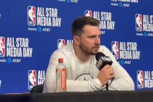 体育资讯2月15日讯 湖人球星东契奇在NBA全明星周末接受媒体采访。