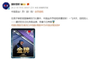 国际雪联写道:中国首金!苏!翊!鸣!