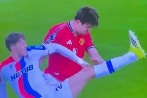 被抓现行!马奎尔未被踢中仍痛苦捂住头部,遭水晶宫球迷群嘲